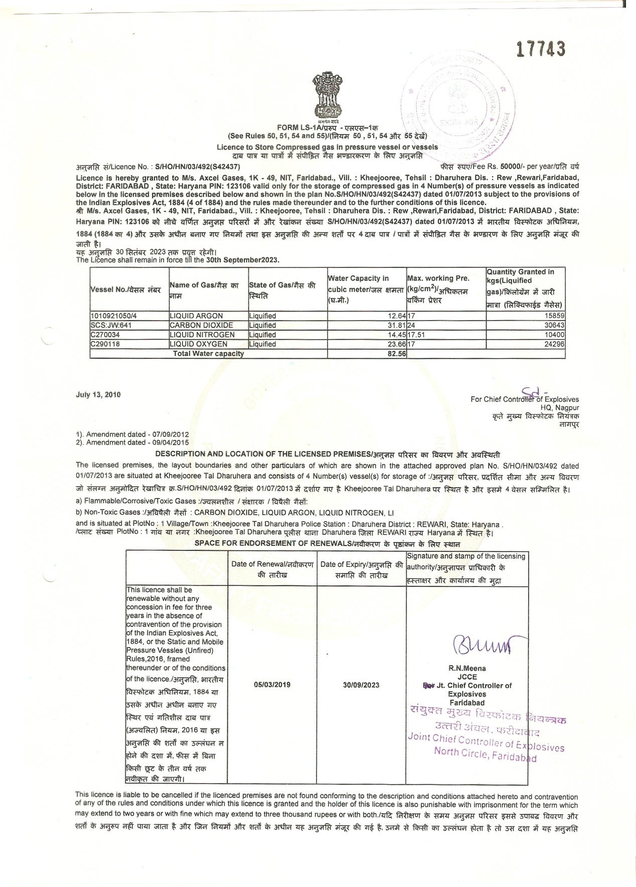 PESO Licence – Cryogenic liquids
